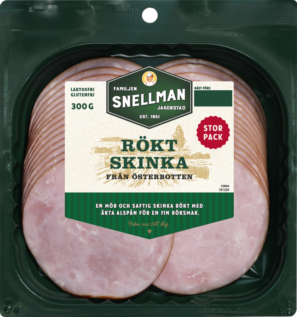 Den här klassiska skinkan från Österbotten passar den som önskar en lättare röksmak, utan att pruta på kvalitén. På Familjen Snellman använder vi äkta rök av alspån när vi gör denna klassiker.